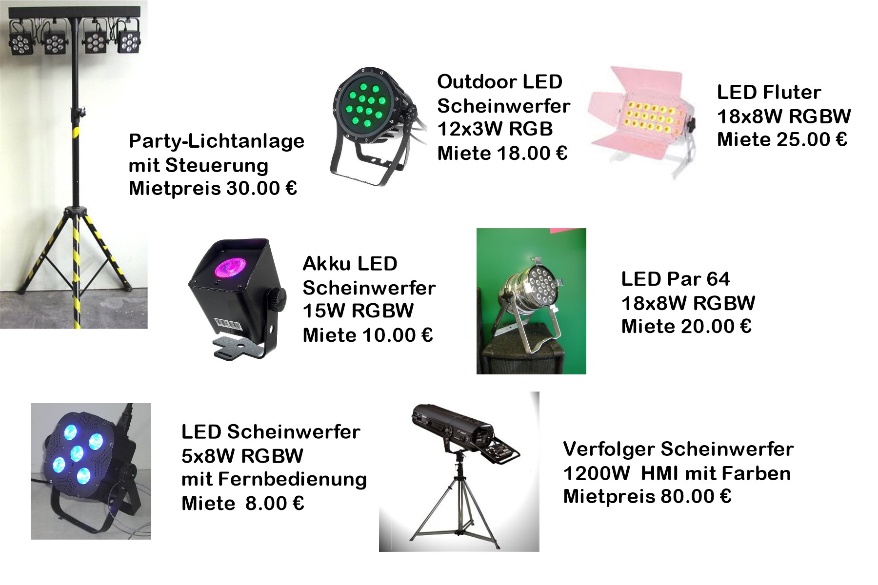 Übersicht der Mietgeräte Lichttechnik